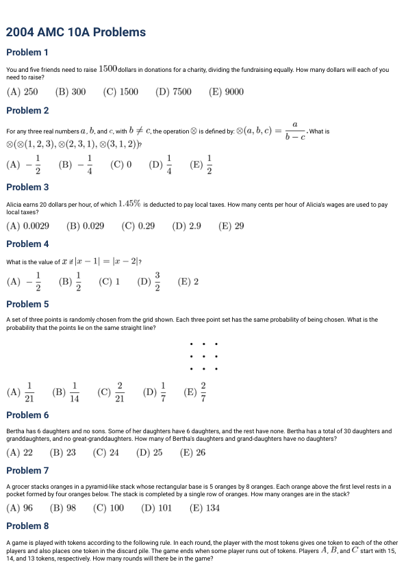 以下问题既来自2004年AMC 12A #1,也来自2004年AMC 10A #3,因此这两个问题都重定向到这个页面。
