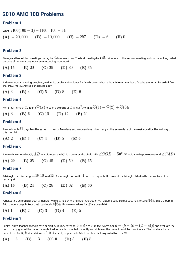 Problem 2 The following problem is from both the 2010 AMC 12B #1 and 2010 AMC 10B #2, so both problems redirect to this page.