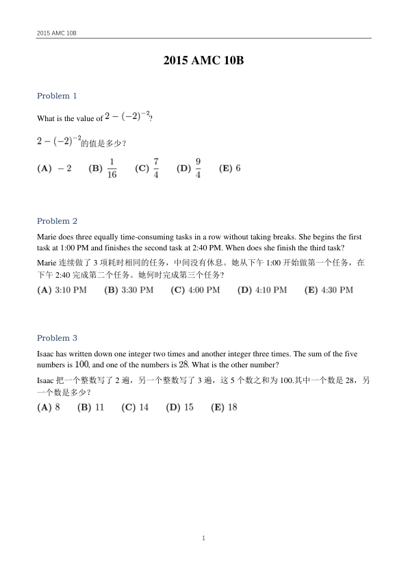 | 1 | 2015-amc10b-paper-eng-zh.pdf | 11 页 | 403.38KB | 中英双语真题 |