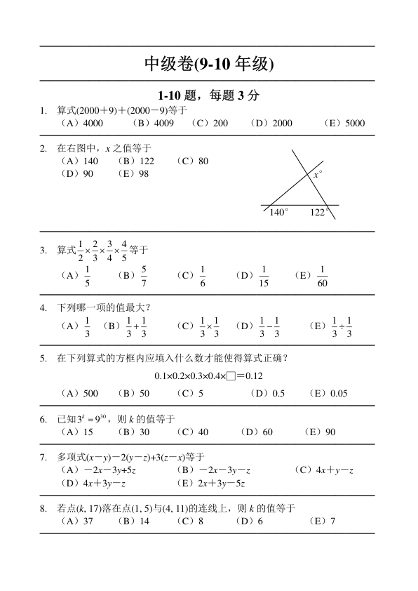 2009 澳洲 AMC D-Intermediate 真题 答案 详解