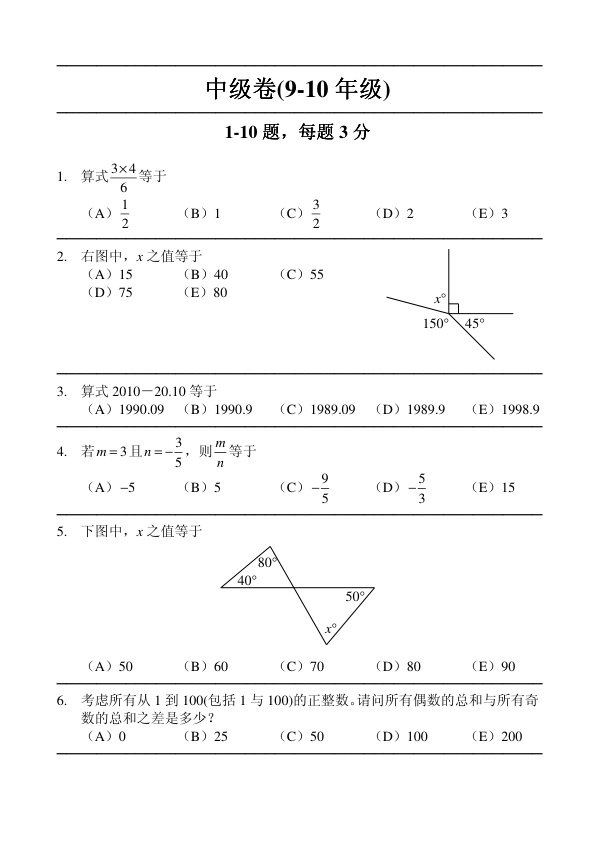 2010 澳洲 AMC D-Intermediate 真题 答案 详解
