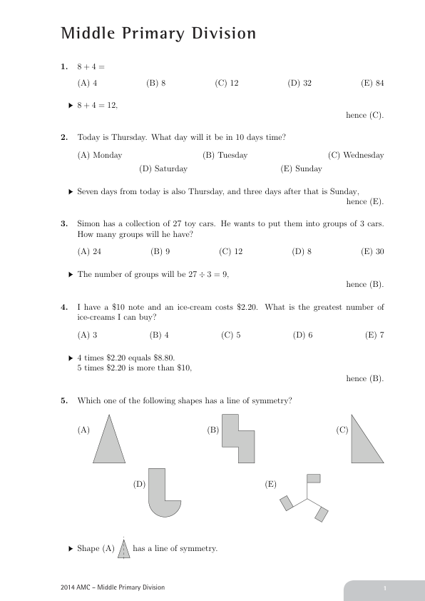 2014 澳洲 AMC A-MiddlePrimary 真题 答案 详解